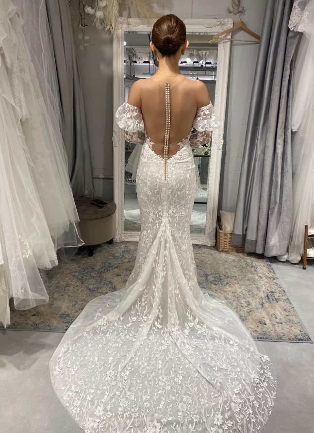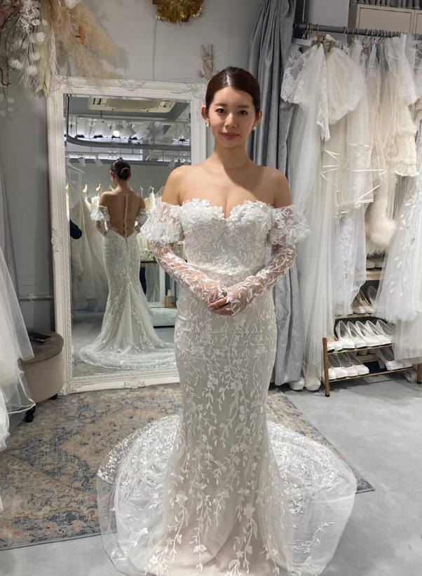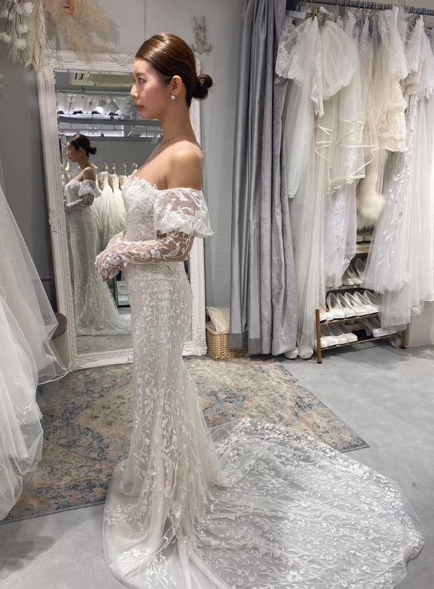 ストレッチ製のあるマーメイドドレスでシルエットが