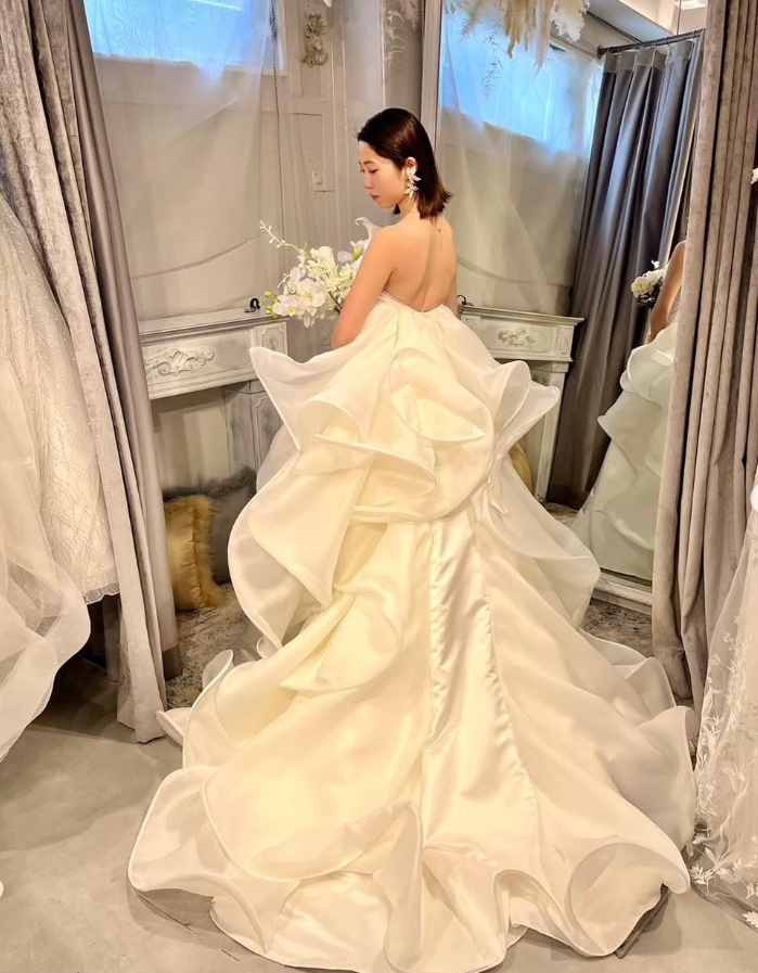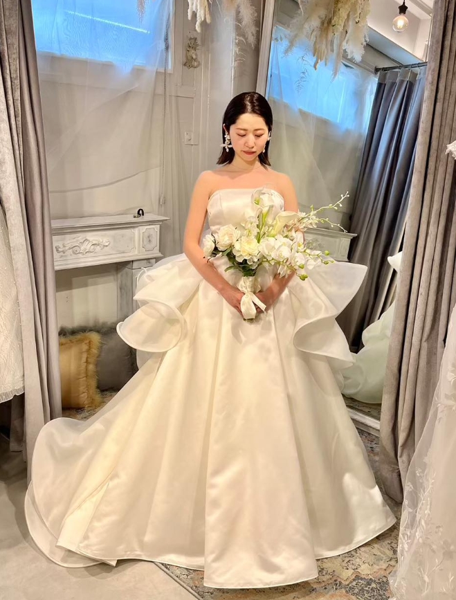 360度どの方向から見ても華やかなボリュームで会場内でも撮影のご利用でも素敵に魅せるドレスです