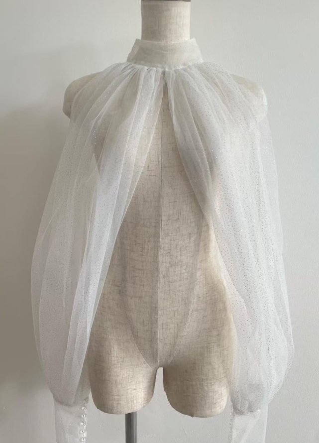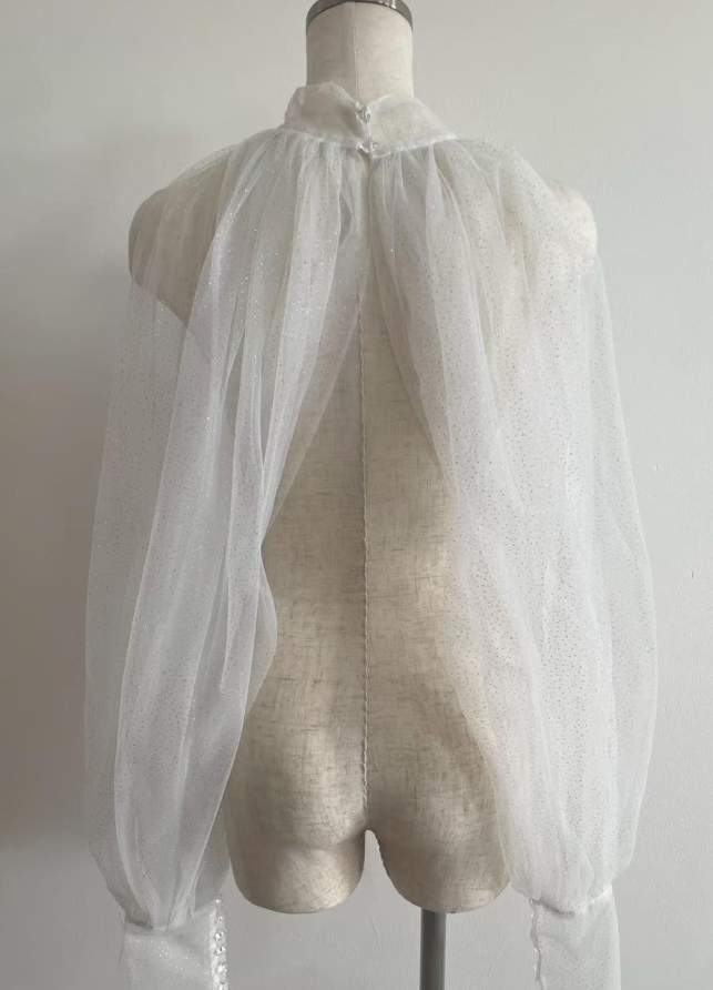 チュールにはキラキラとグリッターがちりばめられていて華やかさを演出