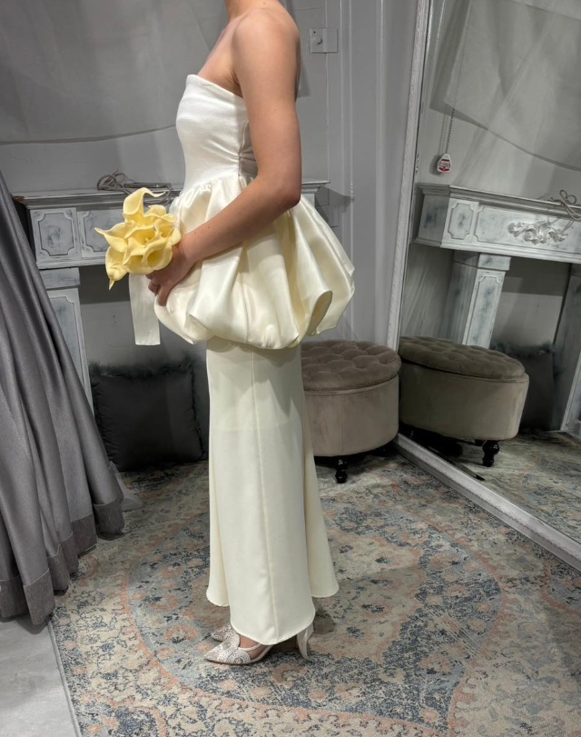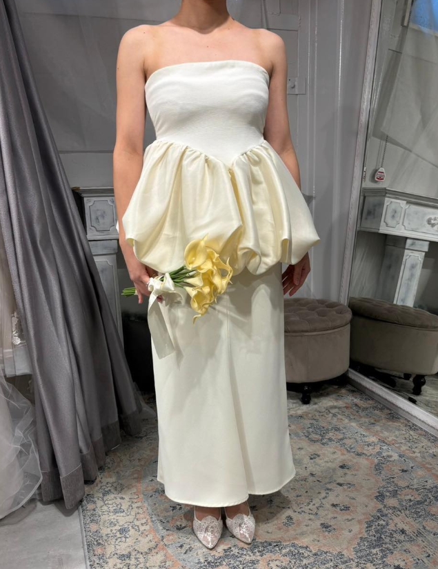 ご自身のスカートやジャケットなどを合わせてアレンジして頂いても素敵なドレスです。
