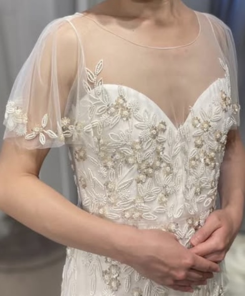 リーフモチーフの総ビージングで重すぎず華やかに見せてくれる1着です。