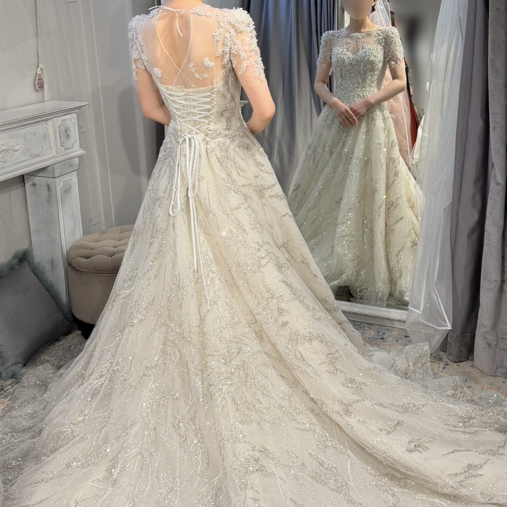 シルバービジューがとても華やかでホテルウェディングや国立博物館前撮りにもぴったり✨