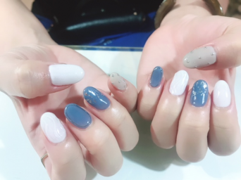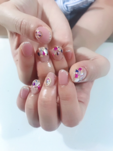 ヌーディーカラーにカラフルシェルのオーダーでお任せデザインです(^^)/