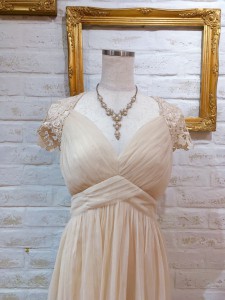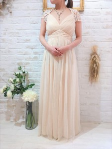 肩から背中にかけてレースになっており肌がチラ見えしてこれから春にむけておすすめのドレスになります♪