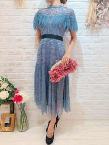 何種類ものレースが使用されたブルーカラーが美しいドレスです♥