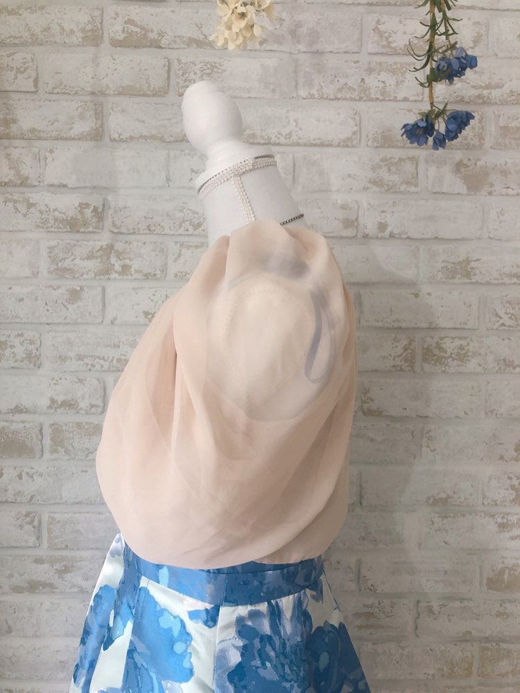 生地感は薄めで透けます!色味が濃いめのベージュカラーで、形がとても特徴的で、可愛いです!生地は薄めで透けますが、腕も隠れるので腕が気になる方にもオススメな1枚です!