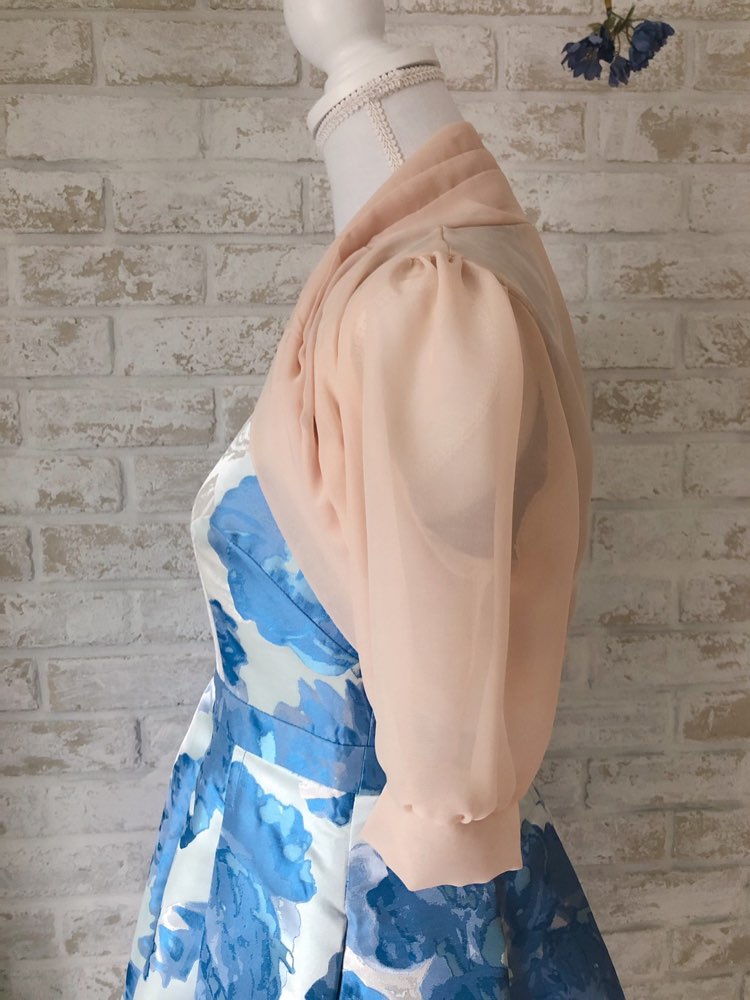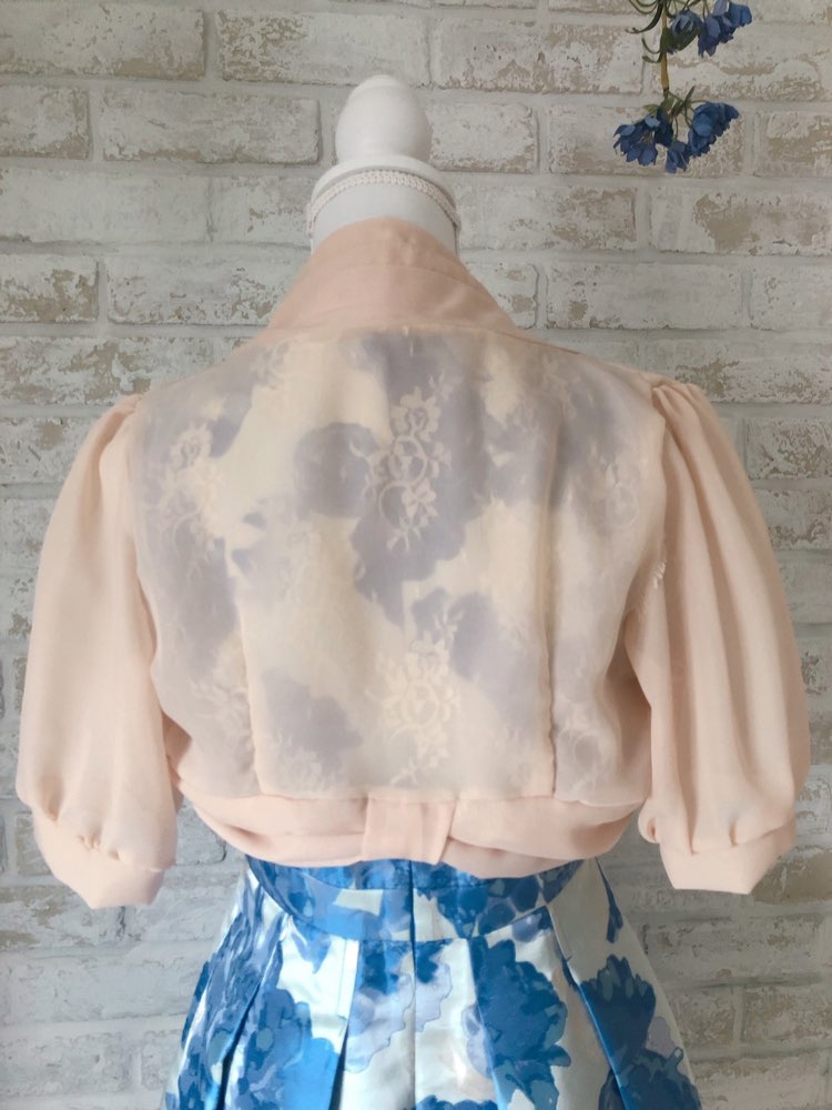 色味はピンクがかったベージュです!中側の生地がレースになっており、チラッと見えたときが可愛いポイントです!レースの柄もお花柄で、後ろはリボンのデザインが1つついておりキュートなデザインとなっております!