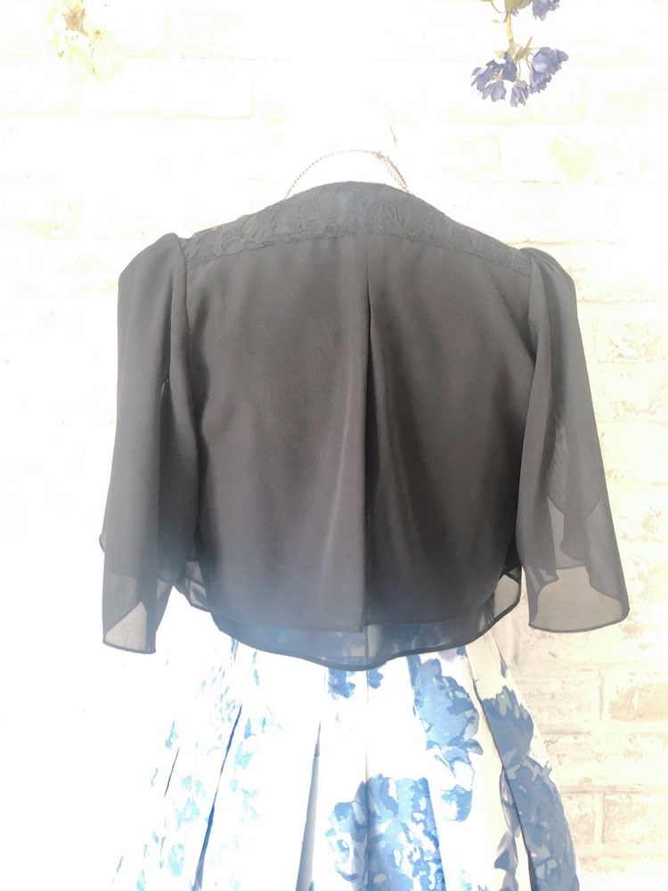 ブラックシフォンの可愛さもあり、クールな印象も与えてくれるボレロ。合わせるドレスによって雰囲気が変わる優秀アイテムです。羽織ものを黒にしていれば、ベージュのドレスもOKなので気に入ったドレスがベージュの際はこのブラックシフォンボレロがマストアイテムです。