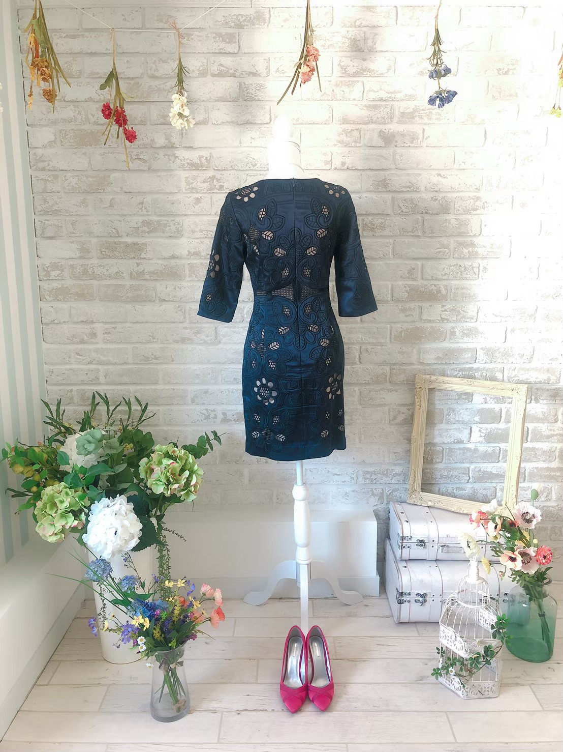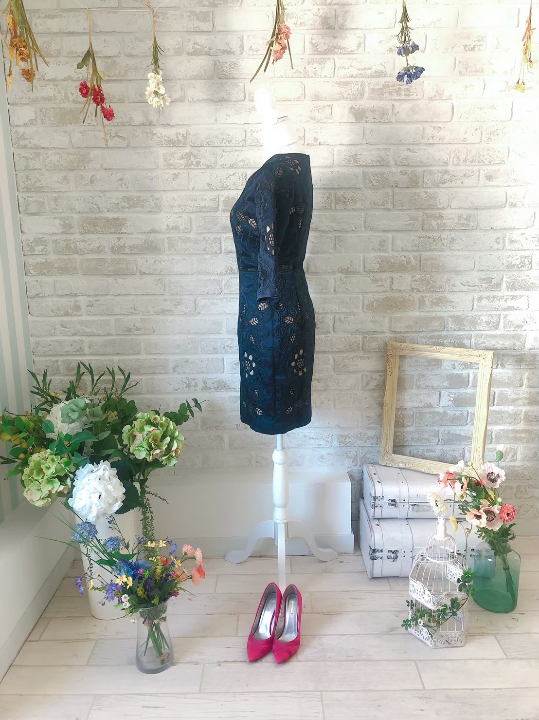 ブラックカラーの大人ドレスです。シースルーのお花のデザインが珍しいドレス。袖も付いているので年齢問わずお使い頂けるドレスです。 タイトドレスなので、普段スカートを履かれない方も挑戦しやすいドレスです。 スタイルを良く見せてくれるデザインになっています。 アクセサリーにはパールなど少し控えめなものが◎。 シューズや、バッグにはアクセントカラーを取り入れてもシックにまとまります。 女子会や、結婚式参列ドレス、お食事会などにいかがでしょうか。