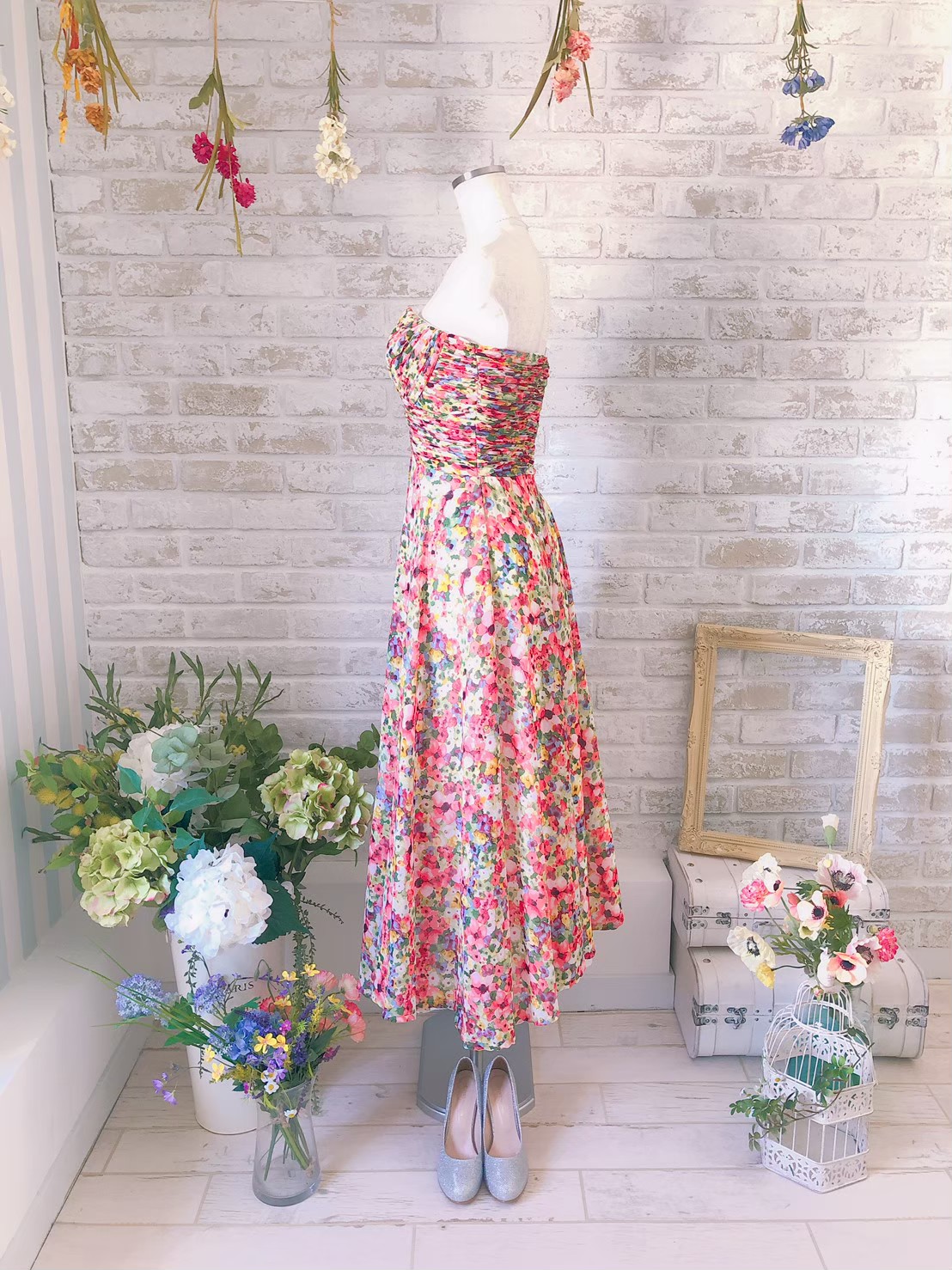 カラフル花柄ベアアンクル丈ドレス