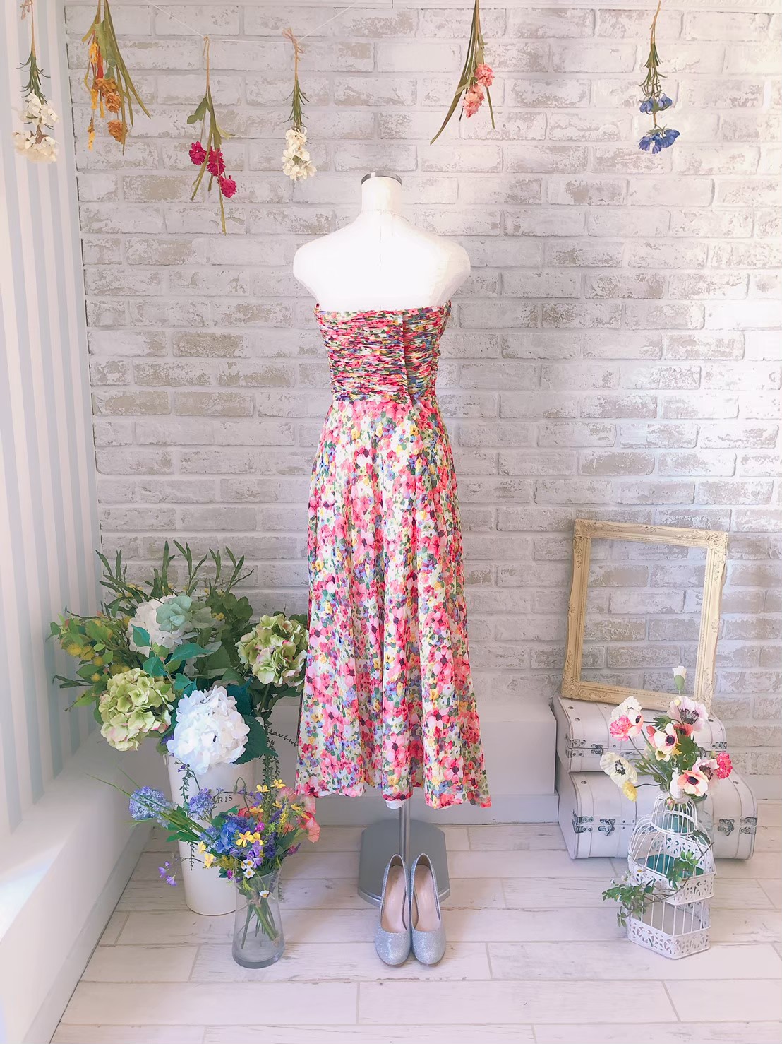 カラフル花柄ベアアンクル丈ドレス