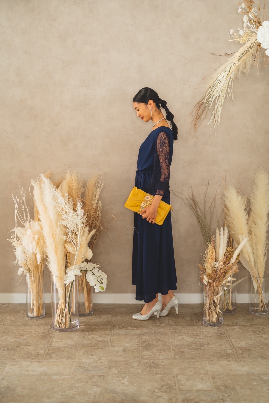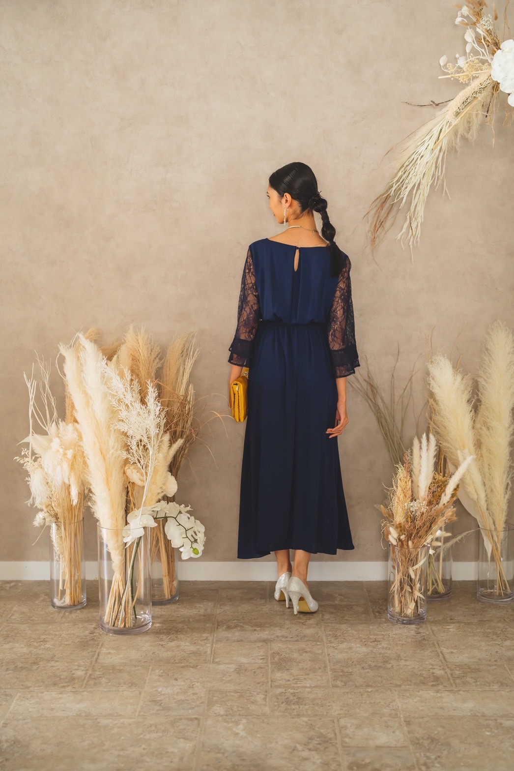 デザインがシンプルにまとまったドレスなのでパーティや二次会、女子会などにもお使いいただけます。