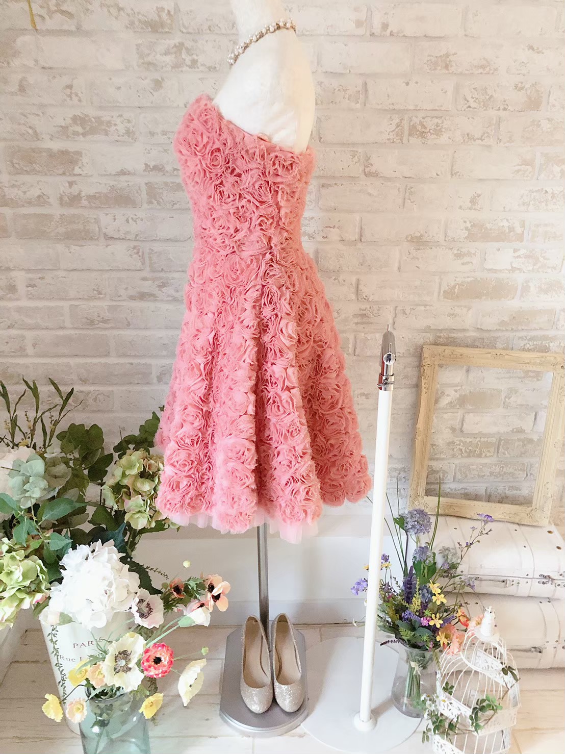 総シフォンのローズデザインドレス。シンプルなドレスなのに存在感抜群です!!