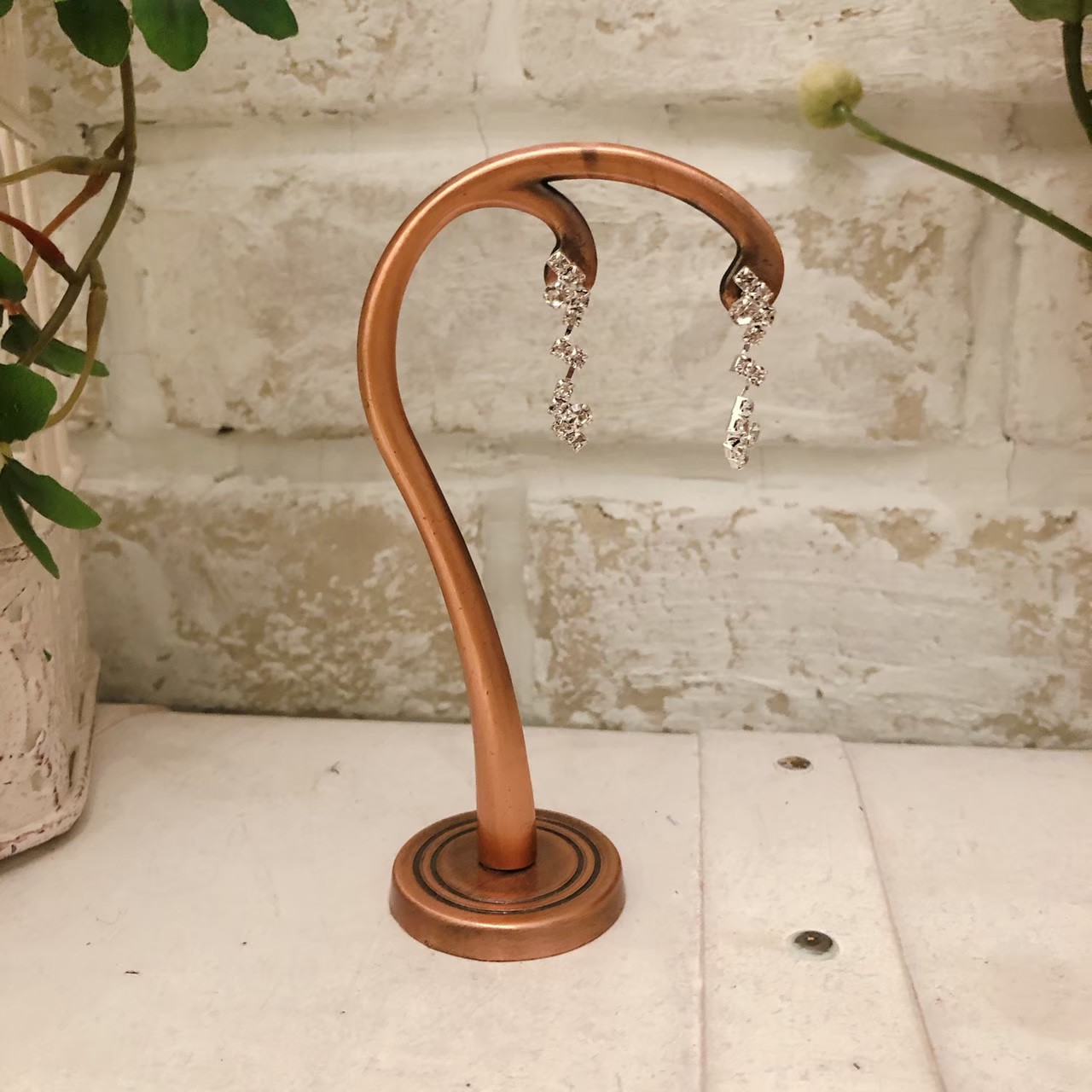 <商品詳細>煌びやかなビジューがジグザグにあしらわれたデザインのピアスです。 シンプルな雰囲気ながらも、ちゃんと存在感のあるところが◎ どんなデザインのドレスとも相性抜群ですし、お揃いのネックレスもございます。 大振りのネックレスと合わせてもGOOD◎ 結婚式二次会や、女子会、食事会など色んなシーンでお使い頂けるアクセッサリーです。