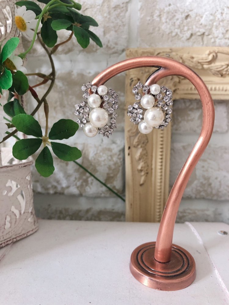 <商品詳細>大粒パールがインパクトのある、エレガントさとシックな雰囲気たっぷりのパールビジューピアスです。