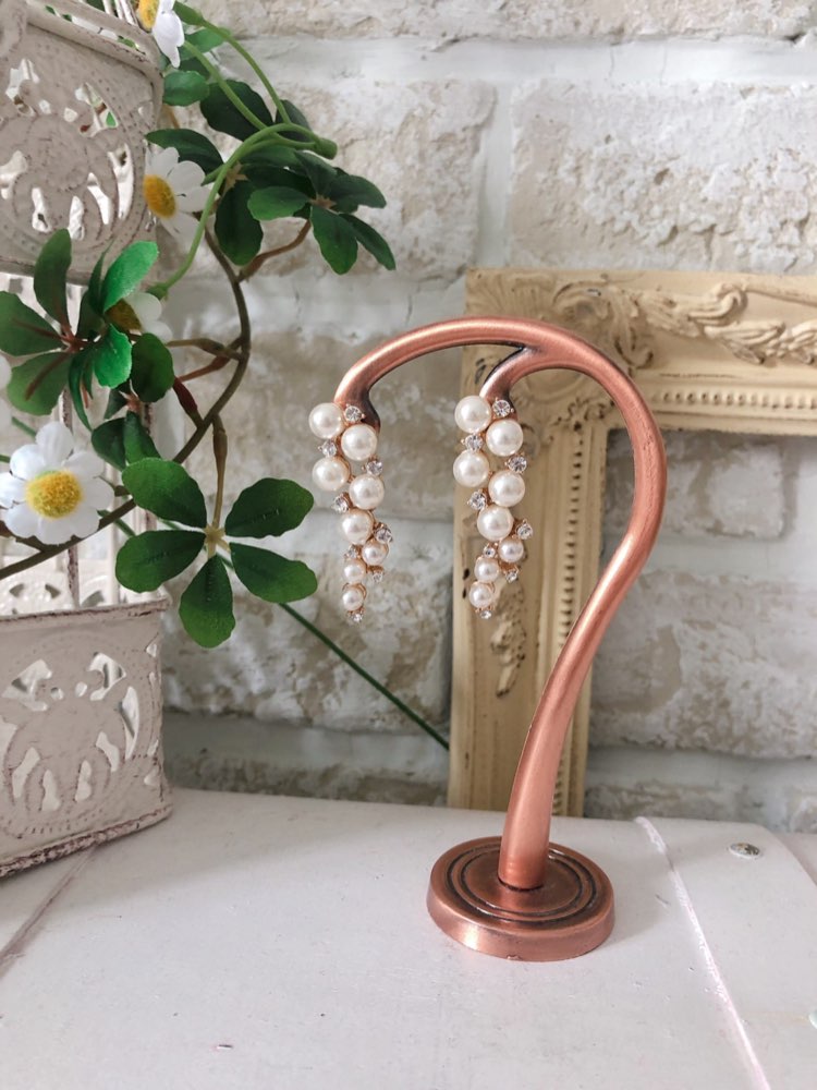 <商品詳細>パールとビジューが流れるようにデザインされたピアスです。 キラキラと動くたびに輝いてキュートでエレガントなピアス。 ネックレスは同系色のゴールドが◎。
