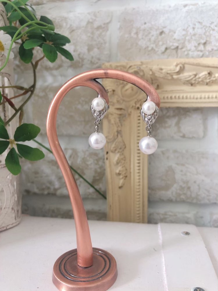 <商品詳細>二つのパールがゴージャスで存在感抜群のシルバーイヤリング。