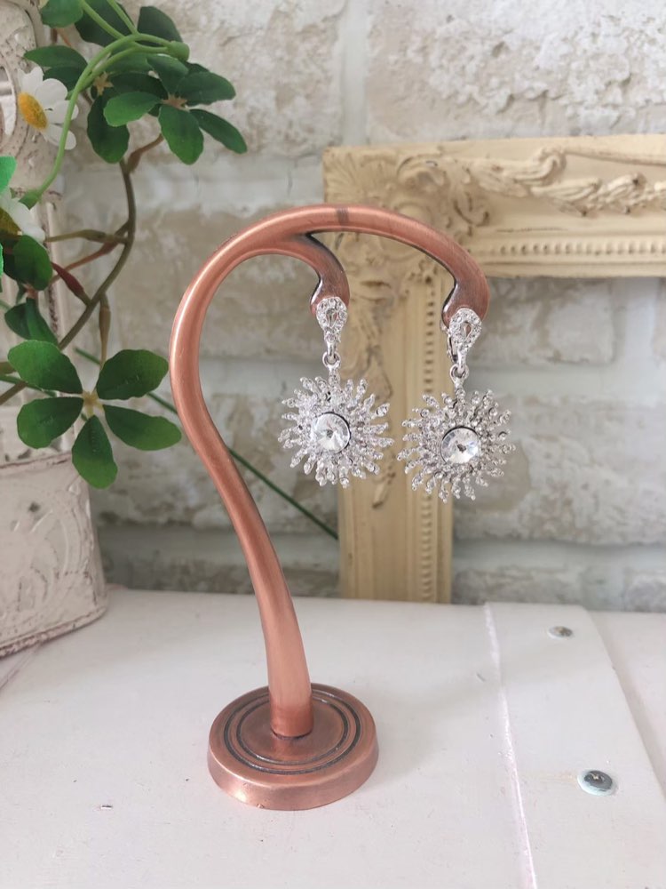 <商品詳細>零れ落ちるほどのビジューがひしめきあい大きめな太陽型がゴージャスな存在感抜群のイヤリング。