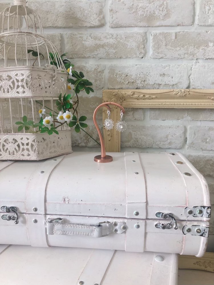 遠目からでもはっきりと感じるボリュームのデザインはお顔をほっそり見せてくれる効果もございます。 マーメイドタイプのドレスやスタイリッシュなヘアスタイルにオススメ。