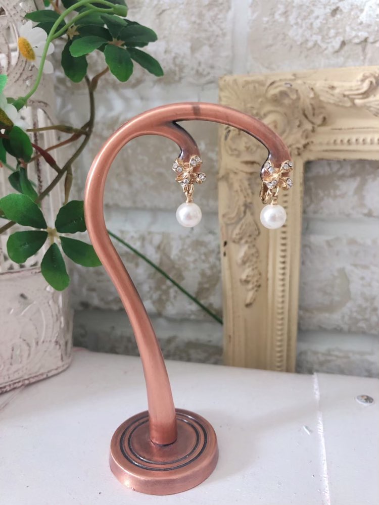 <商品詳細>耳元のリボンモチーフが可愛らしく、可愛いもの・リボンがお好きな方はリボンデザインはこちらの一品だけなのでおすすめなイヤリングです。 たれているパールがさりげなく揺れてとても上品な印象です。 すっきりとしたデザインはお顔をほっそり見せてくれる効果もございます。