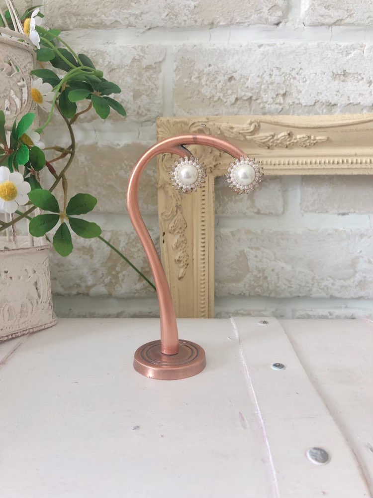 <商品詳細>大粒のパールにゴールドが栄えるパールのイヤリング。 周りについたストーンと小さなパールが華やかで可愛くお花のようなデザインで耳元のきらめきを演出。 どんなドレスとも相性抜群です!キラキラと光るビジューがゴージャスで目立つのでアップスタイルにもピッタリです。