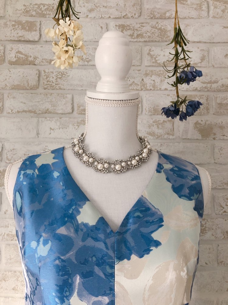 きちんとした場にも最適なパールとクリスタルのショートタイプネックレスは、