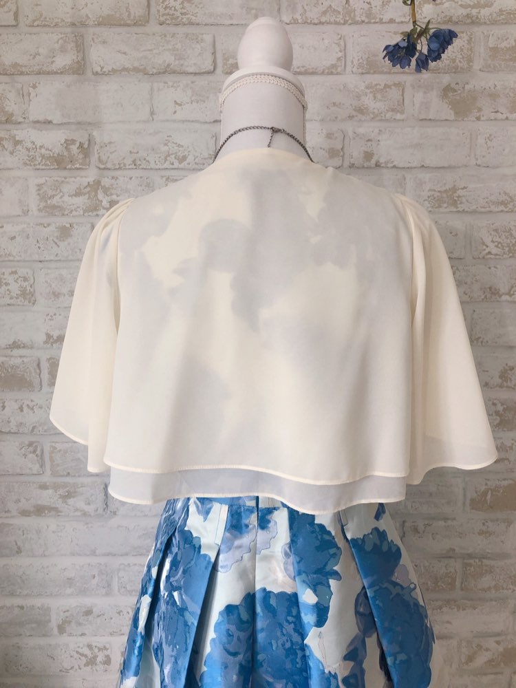 NGB-36のボレロと形は一緒で、肩にレースが無いシンプルなボレロとなっておりますので、どのドレスにも合わせやすく、とても人気な1点となっております!フリルデザインが女性らしさを出していて、とても可愛いです!