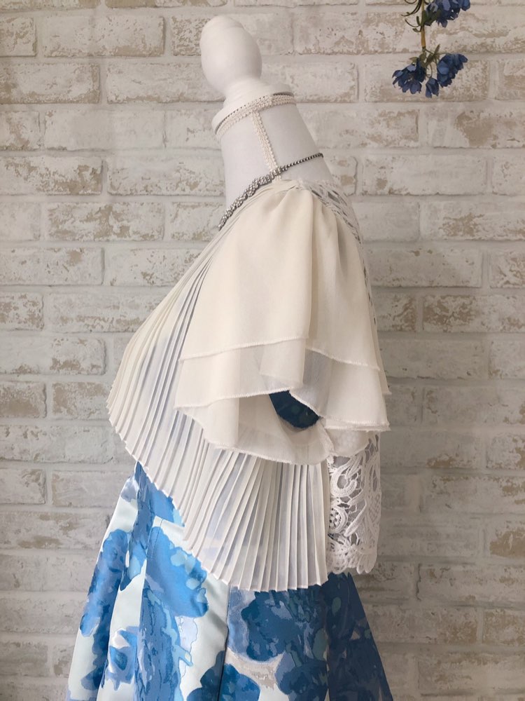 ポイントは、背中のレースデザイン!後ろから見ても可愛い1着となっており、大変人気で合わせやすい商品となっております!色味もベージュというよりかは、ホワイトに近い感じでクリームよりのホワイトといった感じです!肩のふわっとしたデザインも女性らしいです!
