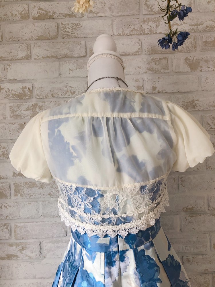 丈は非常に短いです!ドレスを目立たせたい方にオススメです!ギザギザデザインのレースがまた可愛い1点です!色味は真っ白なホワイトではなく、クリームがかったホワイトで非常にどのドレスにも合わせやすいのですが、丈が短いのもあって二の腕が出ます。