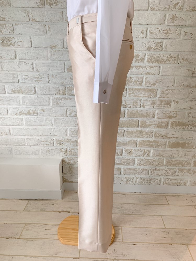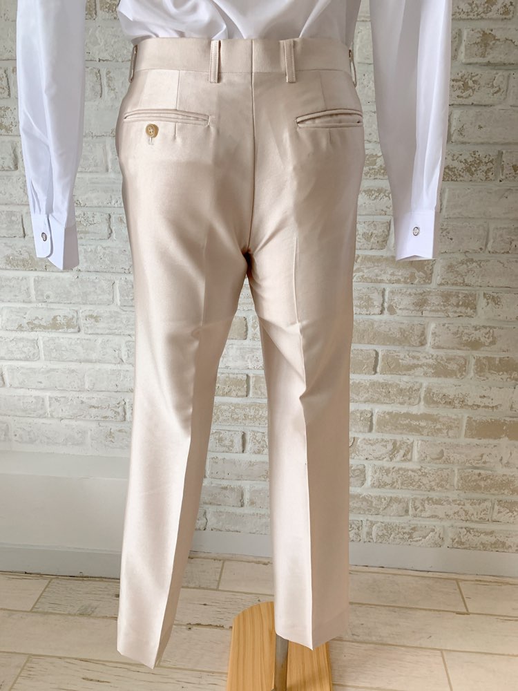 柔らかめな生地のため少しの伸縮性はあるためゆったりめなサイズになりますので、ご試着してお選びいただけます。一人一人お客様にあったサイズ感でお求め頂けます。またお色味はベージュでピンクのポイントも入っていてオシャレです。メンズの標準Sサイズです。肌触りがよく柔らかいお素材のため少しゆったりめサイズ感です。