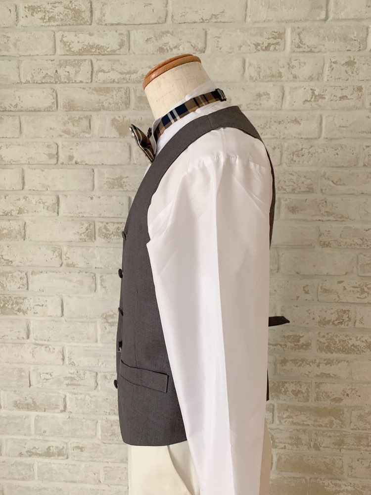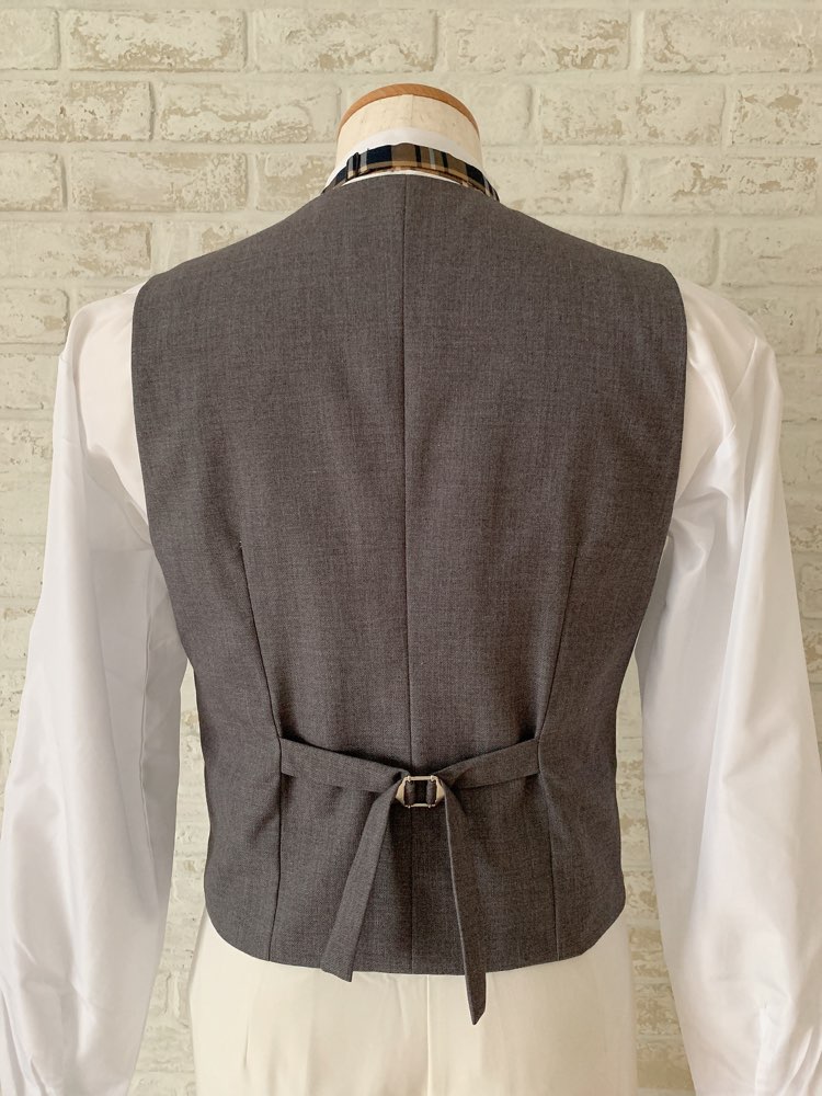 シンプルなグレーベストです。シンプルで合わせやすいベストなのでお持ちのグレースーツでも合わせてもいただけます。どのお色味のスーツでも合わせやすいです。サイズはM~Lサイズのため標準サイズになり合わせやすいです。サイズはMサイズです。