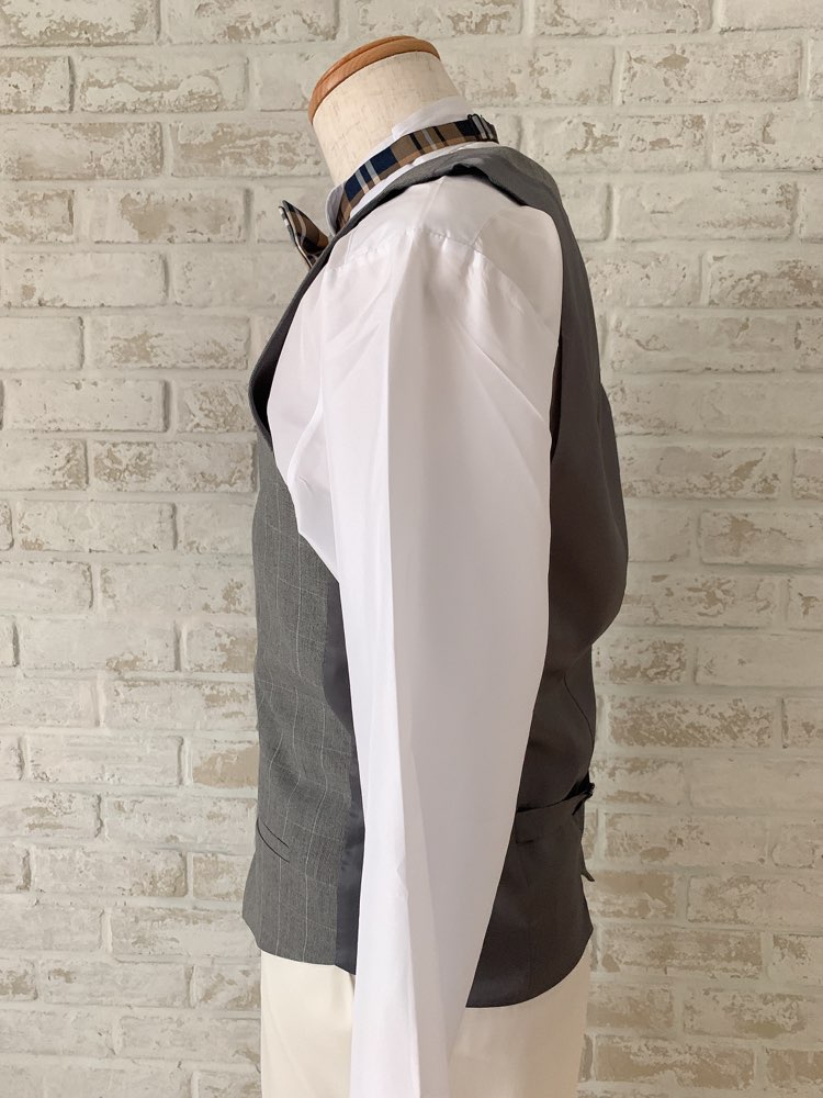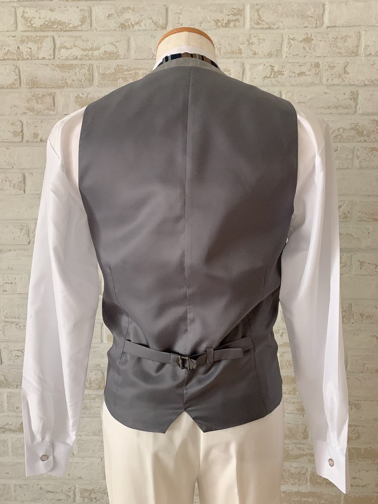 グレーのチェックがおしゃれな一品です。シンプルなスーツでも少しデザインがベストにあるとポイントになりおしゃれでシンプルすぎなく使えます。グレーなので合わせやすくどのお色味のスーツでも合わせやすいです。サイズは40、46と大きめのサイズ展開になります。