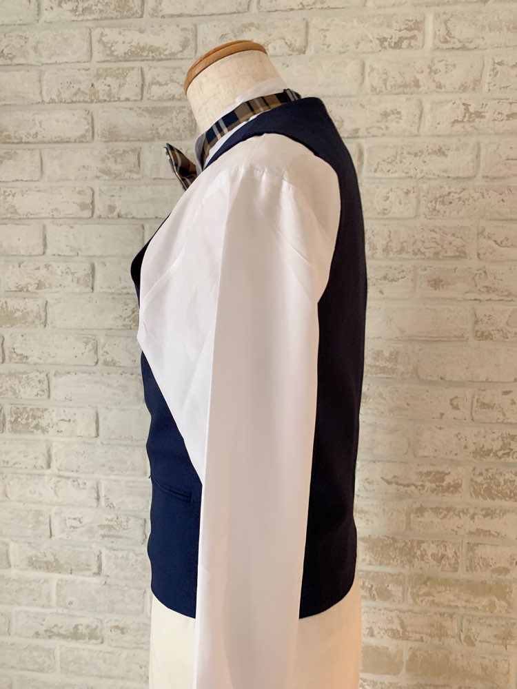 シンプルなネイビーベストです。シンプルながら生地はしっかりしていて、高級感があるおしゃれなベストです。シンプルなのでどのスーツでも合わせていただけると思います!サイズはメンズMサイズになります。