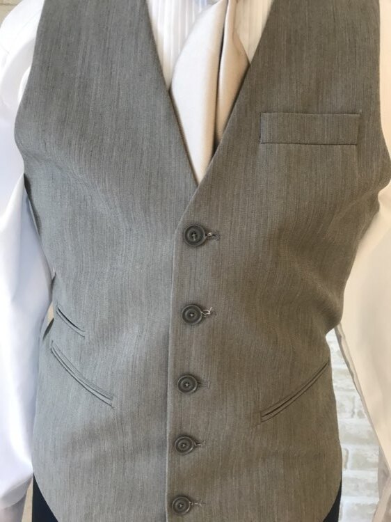 シンプルなグレーベストです。シンプルで合わせやすいベストなのでお持ちのグレースーツでも合わせてもいただけます。どのお色味のスーツでも合わせやすいです。サイズはM~Lサイズのため標準サイズになり合わせやすいです。M~Lサイズになります。