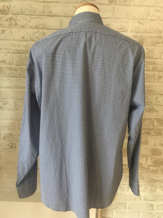 ネイビーのチェックで派手過ぎずまとまりよく着ていただけます。ブラック、ネイビー、グレーなど、どのお色味のスーツでも合わせやすく選びやすいです。シンプルではなくポイントやアクセントを入れたい方にはチェックは挑戦しやすく合わせやすいです。サイズは大きめなので高身長の方体格の良い方にオススメな一着です。サイズはLサイズで通常のLサイズよりかなり大きめのタイプになります。
