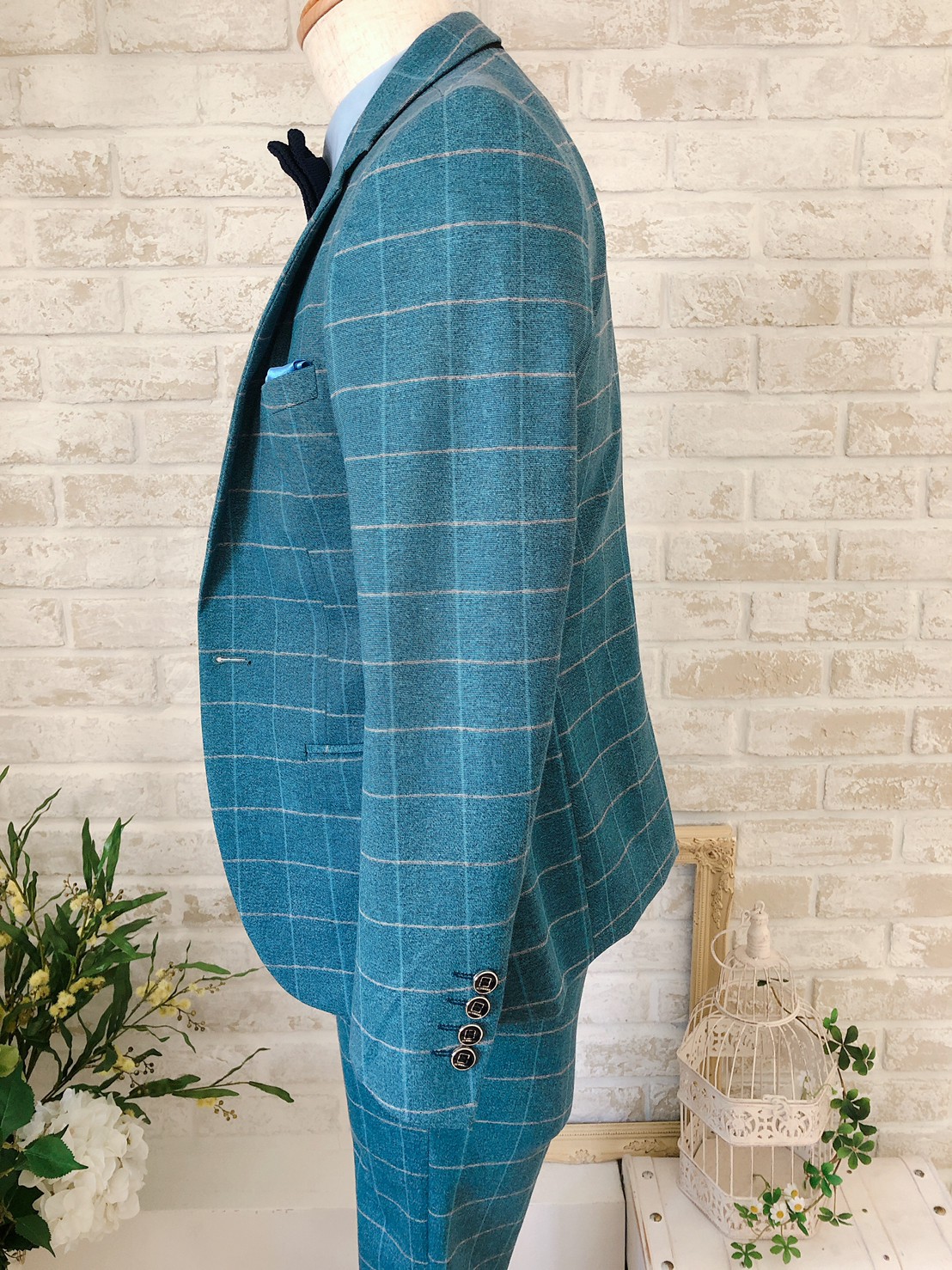 珍しいグリーンチェックジャケットで、他の人と被りたくない個性を出したい方におすすめです。おしゃれなので二次会、お食事会パーティーなどで目立つこと間違いなしです。柔らかめなお素材で、着心地抜群です。サイズはMサイズです。