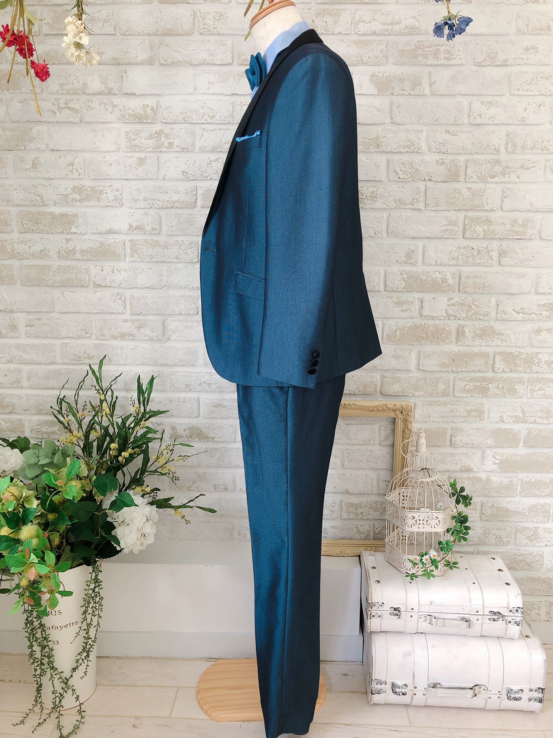 ブルーのお色味で、紺ではシンプルすぎる、もう少しだけ明るいお色味を着たい方におすすめです。派手すぎない綺麗なブルーなのでお顔周りも綺麗に見え、肌なじみもいいです。フォーマルシーンはもちろん、お食事会、パーティーにもオススメです!ジャケットサイズは34、40、42の3種類になります。肌触りが良く柔らかいため着やすい生地感になります。