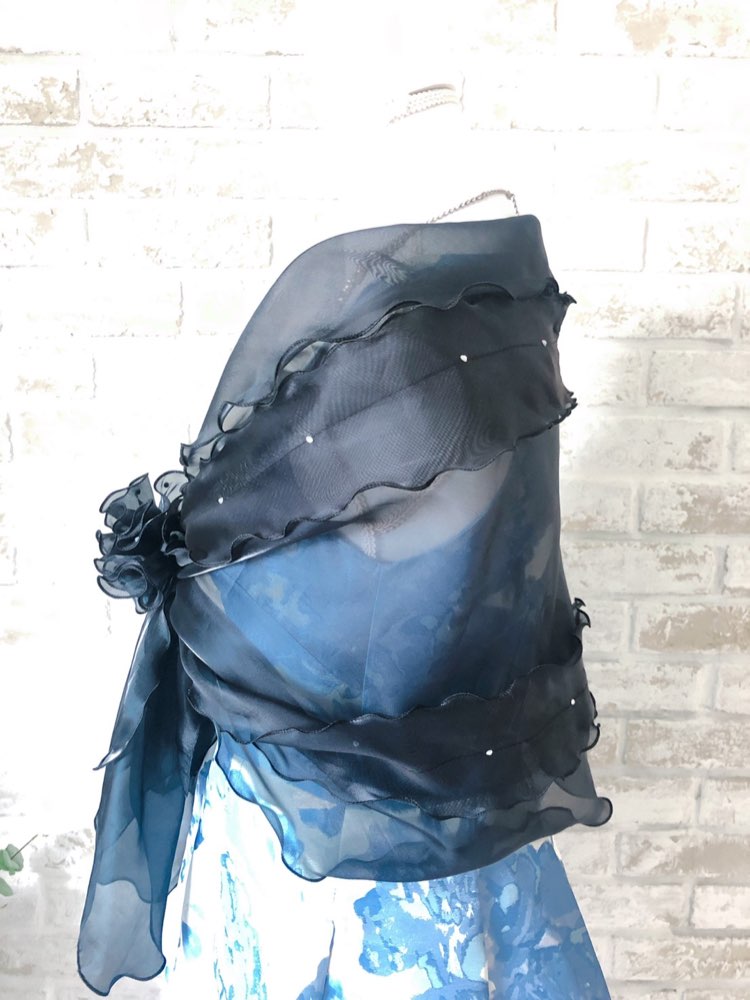 パール付き・フリルショール【黒】