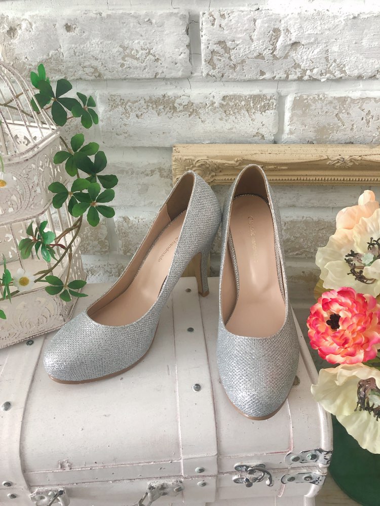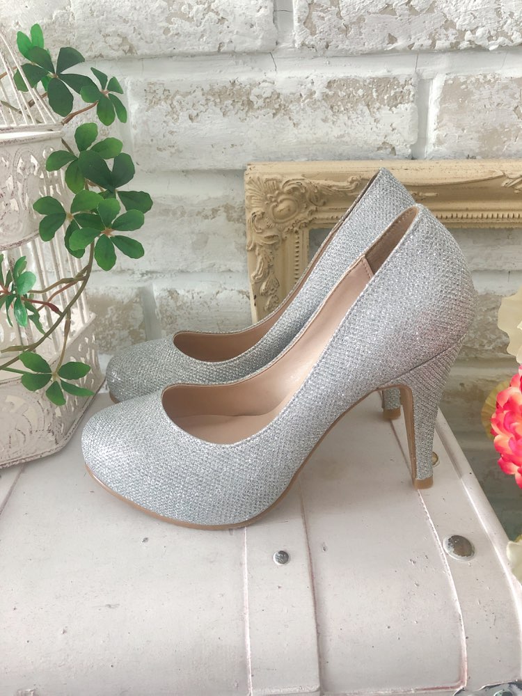 <商品詳細>シルバーのカラーのヒール高めのシューズです。