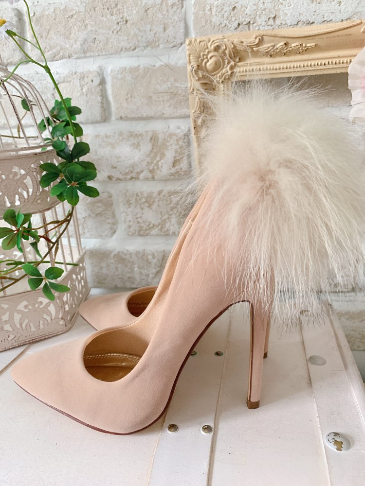 <商品詳細>かかと部分にファーがゴージャスに施されたベージュカラーのパンプスです。ヒールの高さは高めですが形がとても綺麗で女性の足をより美しく演出してくれます。ボリューミーなファーがゴージャス感を引き立たせてくれ、シンプルなドレスの時にも◎。ベージュカラーなので肌なじみも良く、どんなドレスとも相性抜群です。ファーが付いているので結婚式には不向きにはなりますが華やかなシーンに大活躍!!パーティー、女子会、お食事会、特別な日に是非・・いかがでしょうか。