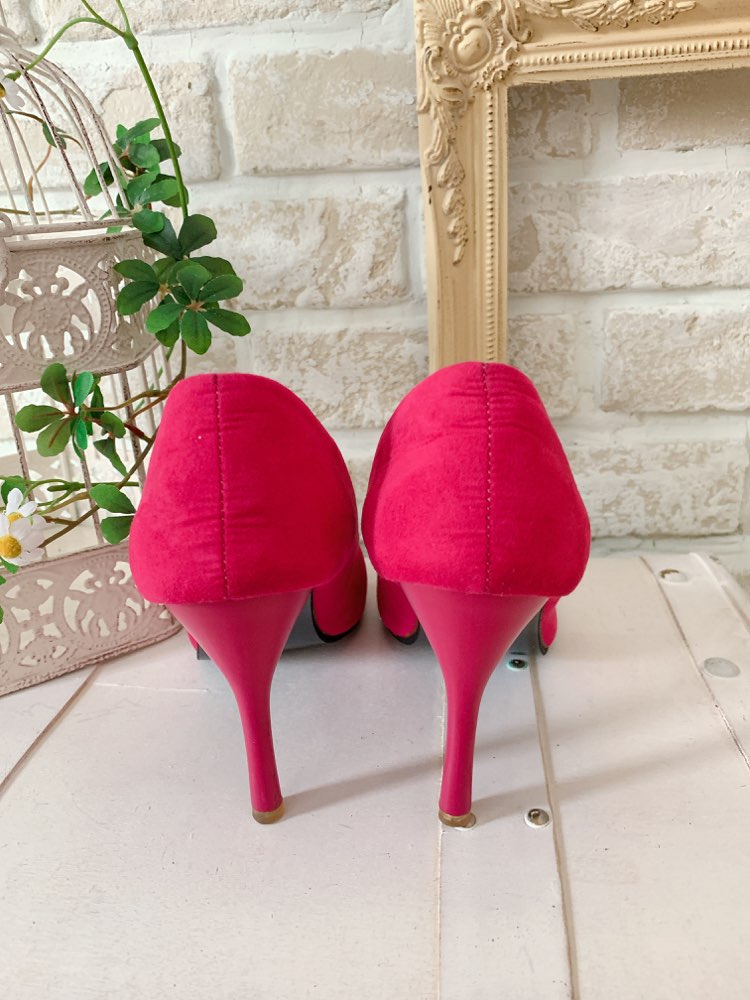 <商品詳細>ショッキングピンクカラーのパンプスです。色味の強いカラーですが意外にもどんなカラーとも相性が良く、アクセントにもなります。バッグで同じ色味のものもあるのでバッグとカラーを合わせても可愛いです。パープル系がお好きな方や、かっこよく決めたいな・・とゆう方には特におすすめです。ヒールは高めの9.5㎝ヒールですがエレガントな雰囲気にしてくれます。シルバーのドレスや、ブラックフォーマルの時にもよく映えると思います。