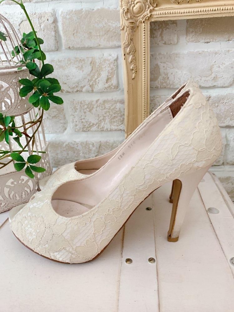 <商品詳細>ホワイトのレースが全体的に施されたオープントゥパンプスです。レースがさりげなく主張している感じでお上品なパンプスです。ホワイトカラーなのでどんなドレスとも相性が良く、小物類との相性抜群です。シンプルながらも上品さを兼ね備えた1足です。ヒールは高めですが、ヒールの高さが高い方がよりエレガントな装いになること間違いなしです。花嫁さんのウェディングシューズとしても、パーティーや女子会お食事会の時などに是非いかがでしょうか。