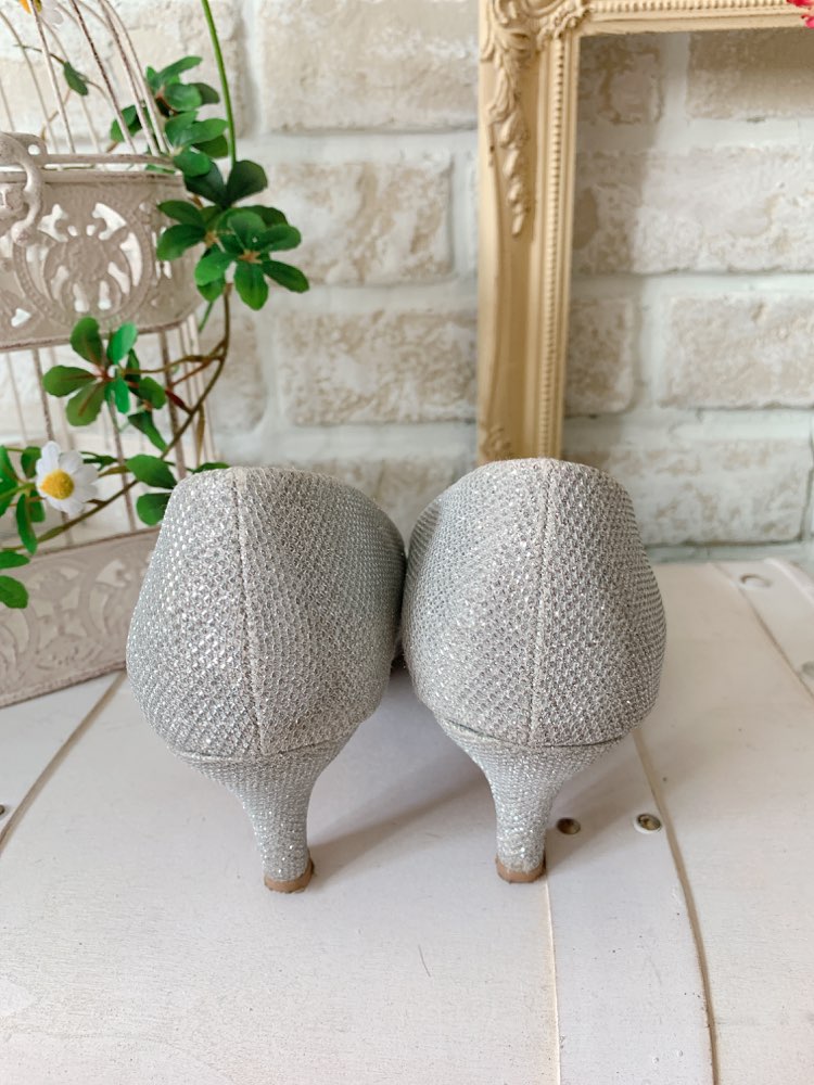 <商品詳細>シルバーをベースに、キラキラストーンがたくさん散りばめられた、パンプスです。ストーンが歩くたびにキラキラと光りゴージャスな演出をしてくれます。シルバーカラーがかっこよくも、上品にも演出してくれます。6.5㎝ヒールで、普段あまりヒールは・・とゆう方にも安心の低めヒールとしっかりとしたソールで、歩きやすさも◎。程よいヒールをお探しの方には是非オススメです。シンプルなデザインなのでどんなドレスとも相性抜群です。ご親族の結婚式、同窓会、お食事会、女子会など幅広くお使い頂ける一足です。