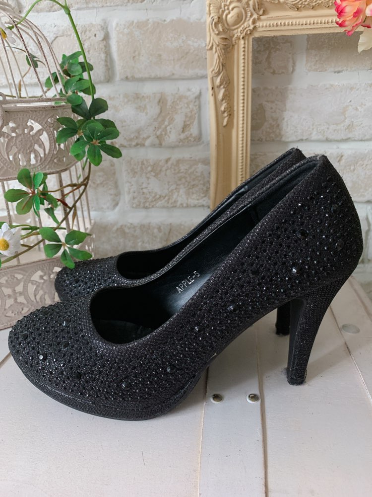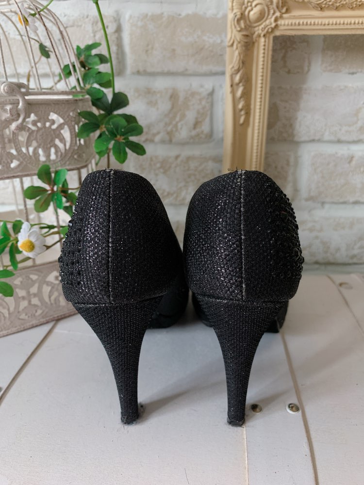 <商品詳細>ブラックベースにブラックストーンがたくさん散りばめられた、パンプスです。かっこよくも、エレガントな雰囲気にもなります。モノトーンコーディネートや、ブラックフォーマルな時にオススメです。サイズ展開も豊富で足元だけお友達とお揃いにもできます♪アクセサリーは、うんと派手めなのをチョイスすると、全体的に華やかさもUP間違いなしです!9㎝ヒールで、女性の足元をきれいに演出してくれる高さです。普段あまり高いヒールは・・とゆう方にも安心のしっかりとしたソールとなっていますので、歩きやすさも◎。パーティー、お食事会、女子会などにいかがでしょうか。