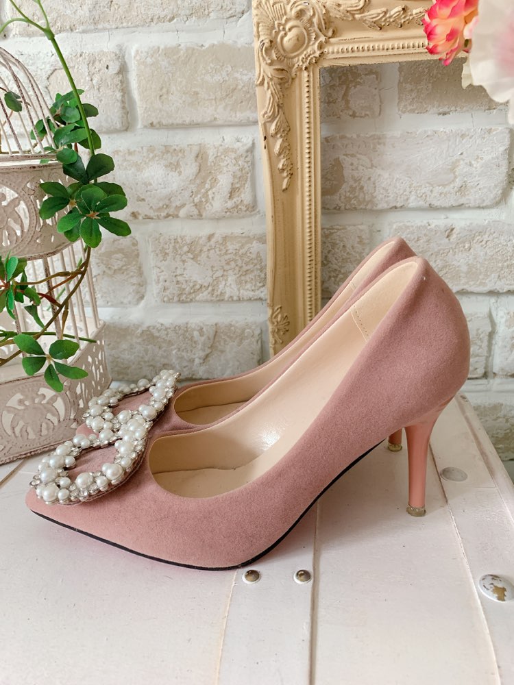 <商品詳細>スクエア型にパールがつま先部分に施された、モーヴピンクカラーの大人可愛いパンプスです。スエードっぽい素材で、秋冬シーズンには大活躍のパンプス。春夏もピンクカラーなので◎。アクセントカラーとして取り入れても、同系色カラーコーディネートとしても可愛い1足です。パールが程よくエレガントさを演出してくれ、大人な女性にぴったりです!!ヒールの高さは女性の足を綺麗に魅せてくれる8㎝ヒール。ピンクが好きな方や、大人可愛い感じがお好きな方に是非オススメの一足になっています。
