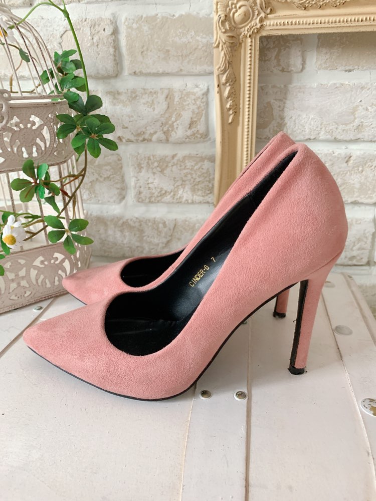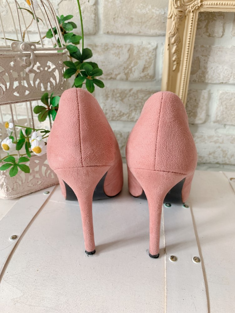 <商品詳細>ベビーピンクカラーのワンカラーのパンプスです。スエードっぽい素材で、秋冬シーズンには大活躍のパンプス。春夏もピンクカラーなので◎。アクセントカラーとして取り入れても、同系色カラーコーディネートとしても可愛い1足です。ヒールの高さは女性の足を綺麗に魅せてくれる10㎝ヒール。ピンクが好きな方や、大人可愛い感じがお好きな方に是非オススメの一足になっています。