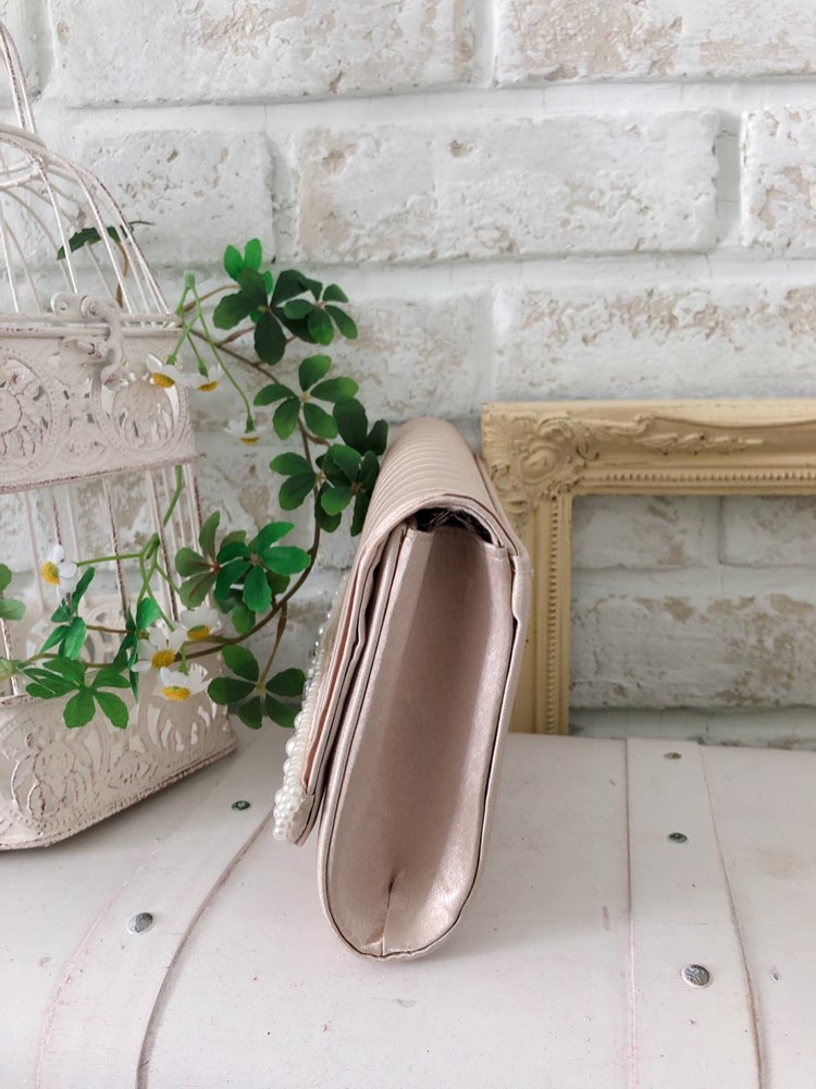 品良く清楚な印象を与えてくれるプリーツデザインのシャンパンベージュバッグです。ドレスを選ばないシンプルなデザインで、お好みのドレスとコーディネートOK。結婚式や各種パーティー等、どのシーンでも安心してお使いいただけます。