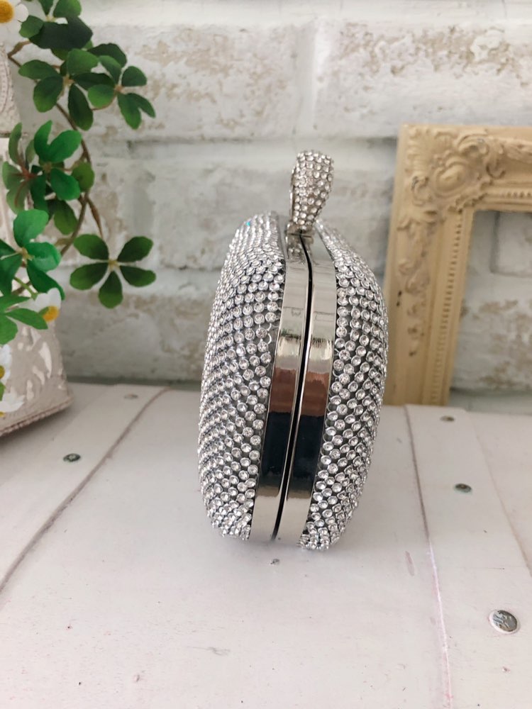 華やかでボリュームあるキラキラビジューがエレガントなシルバーカラーバッグです。前面に敷き詰めれれたキラキラビジューが煌びやかな雰囲気を放ち上品な演出を叶えてくれます。シンプルなドレスもゴージャスバッグをONすれば、華やかさとお洒落感をブラッシュアップ。