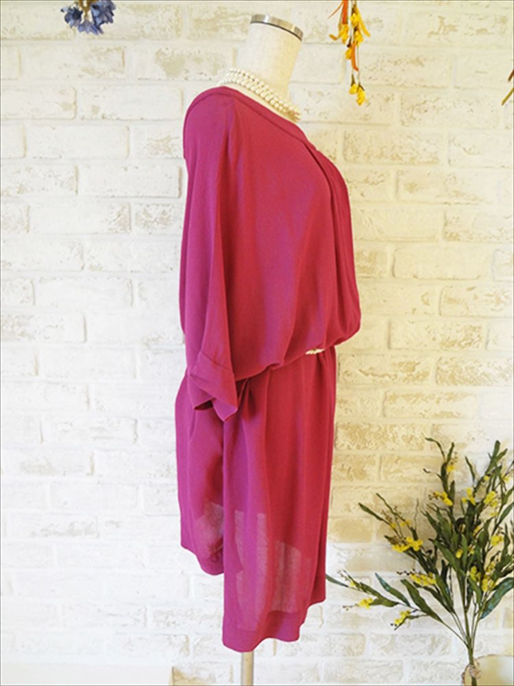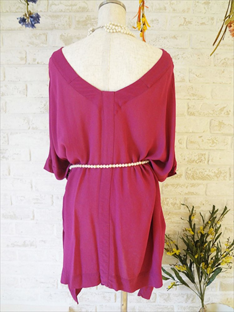 袖がフワッとしているので腕が気になる方にオススメです。ウエストにはパールのベルトで細く見せ、背中が開いていて大人っぽくなりすぎないセクシーさがあります。バックは落ち着いたカラーを合わせるのもいいですが、黄色など真逆なカラーを選ぶとおしゃれで可愛いです。