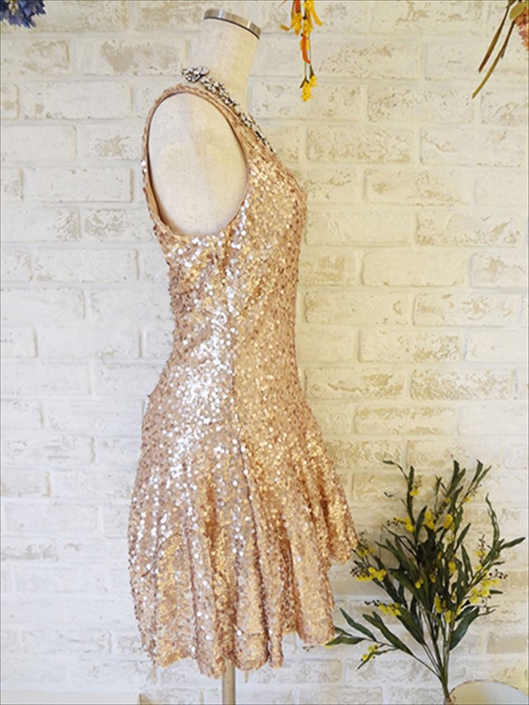 キラキラしていてゴージャスなパーティードレス。他の方と被らず、目を引くデザインでパーティーや謝恩会におすすめな1着です。バックはカラーがあるものをお選び頂くとポイントになり可愛いです。Vカットが鎖骨が綺麗に見えて女性らしい華やかな印象になります。